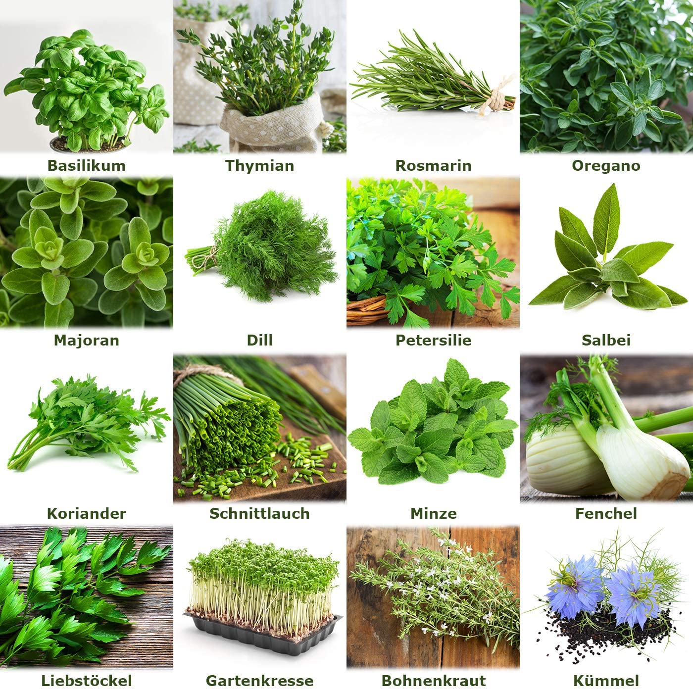 Kräutersamen Set: Pflanzensamen zur Anzucht der typischen Küchenkräuter. Oregano, Thymian, Majoran, Rosmarin, Dill, Basilikum, Salbei, Petersilie, Koriander Samen, Schnittlauch Samen, Minze, Fenchel, Liebstöckel, Gartenkresse, Bohnenkraut, Kümmel