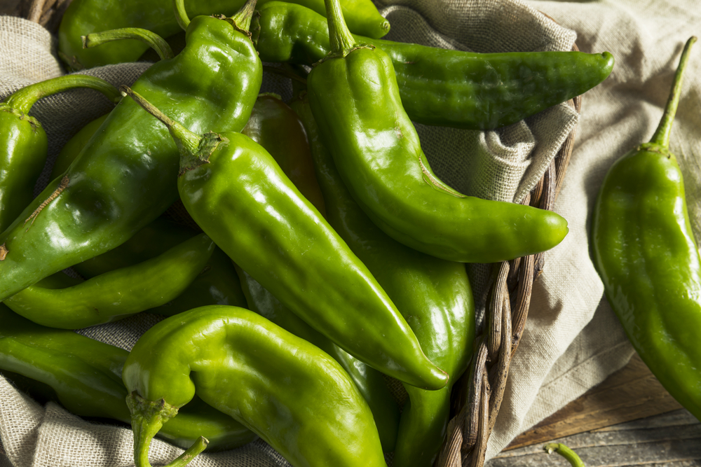 Anaheim Chilis sind eine Sorte grüner Chilis, die ursprünglich aus Anaheim, Kalifornien stammen. Sie haben einen milden bis mittelscharfen Geschmack und werden oft in der mexikanischen Küche verwendet. Anaheim Chilis werden oft geröstet und gehackt für Salsas, Chilis und andere Gerichte verwendet.