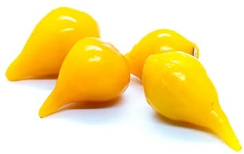Biquinho Yellow (Capsicum chinense) – Auch bekannt als „Little Beak Peppers“, die einem spitzen Vogelschnabel ähneln, und „Sweety Drops“ in Gourmet-Läden, wenn sie eingelegt verkauft werden. Der andere Name der Einheimischen ist „Chupetinho“, der zuerst im Amazonas-Dschungel von Peru entdeckt wurde und jetzt frisch und eingelegt in ganz Brasilien und Peru vermarktet wird. Der Name Biquinho bedeutet „kleiner Kuss“. Das Biquinho Yellow hat etwas weniger Schärfe als die Red-Variante mit mehr zitrusfruchtigen Geschmackstönen. Das Schärfeniveau erreicht nur wenige tausend Scoville-Einheiten, sodass sie unter der durchschnittlichen Hitze von Jalapenos liegen. Das traditionelle Rezept zum Einlegen besteht aus Essig, Salz, Zucker und Cachaca. Cachaca ist eine alkoholische Spirituose, die aus reinem Zuckerrohrsaft destilliert wird, im Gegensatz zu Rum, der aus Melassezucker destilliert wird. Cachaca war früher schwer zu finden, ist aber heute in großen Spirituosengeschäften auf der ganzen Welt erhältlich. Die Biquinho Yellow Chilis sind etwas mehr als 2,5 cm lang und die Pflanzen sind sehr produktiv. Wenn sie nicht eingelegt sind, eignen sie sich hervorragend für die Zubereitung einer frischen Salsa, Saucen oder als Zugabe zu Salaten. Die Biquinho Yellow Chilipflanzen werden 3 bis 4 Fuß hoch.